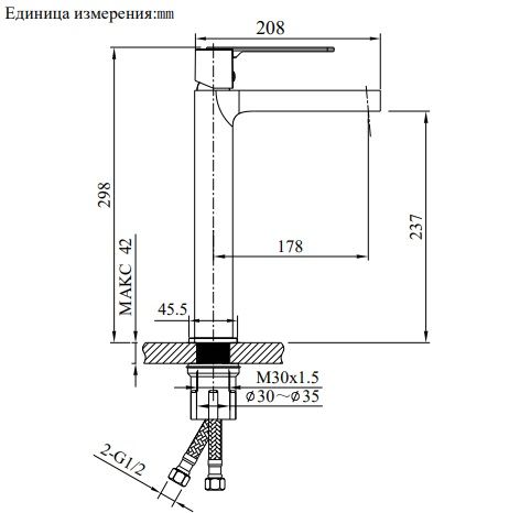 • Высота смесителя: