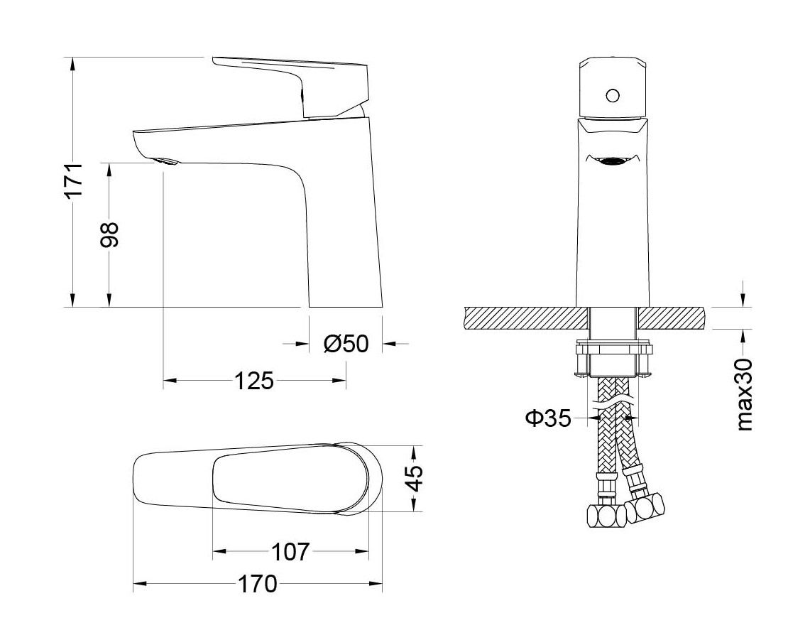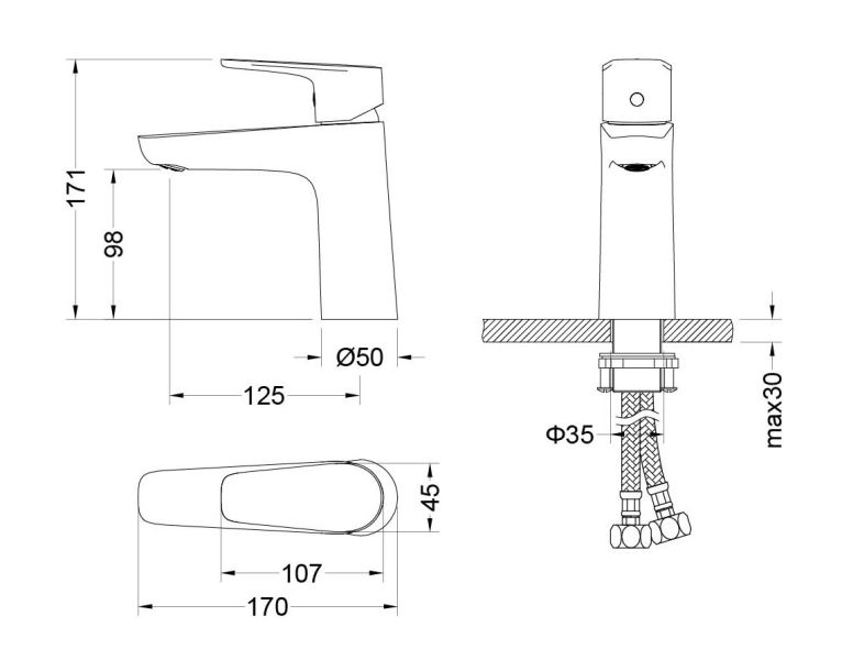 • Цельный корпус смесителя снижает вероятность протечек