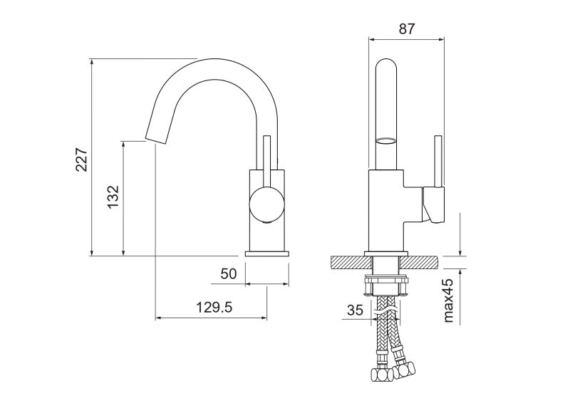 Высота излива (см): 13,2Длина излива (см): 12,95Аэратор: Neoperl, ШвейцарияГибкая подводка в комплектеДлина гибкой подводки (см): 60Тип резьбового соединения: M10Стандарт подводки: 1/2"Вращение излива: поворотныйТип управления: рычажныйНазначение: для раковиныКоличество монтажных отверстий: 1 отверстиеПодключение к системе водоснабжения: гибкая подводкаМеханизм: керамический картридж Citec, ИспанияДиаметр картриджа (мм): 35Картридж холодного запуска Ecostart (ColdStart): да