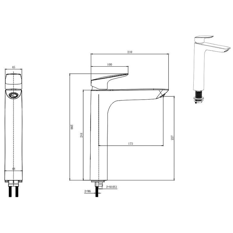 • Высота смесителя: