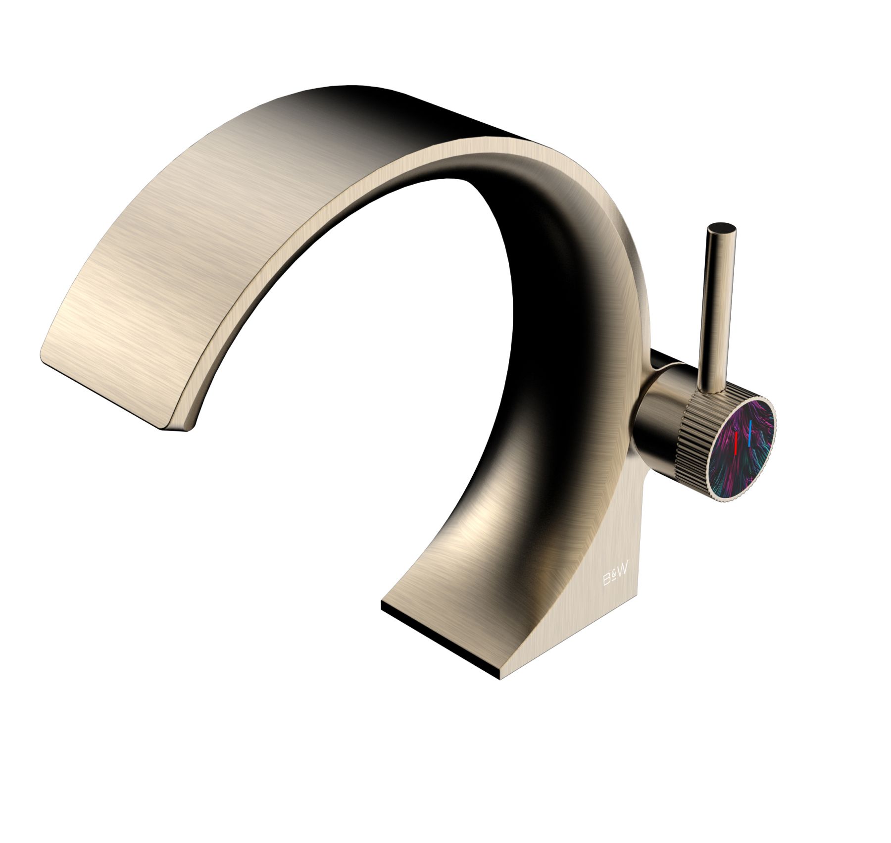 Смеситель для раковины датского производителя Black&White цвета брашированного золота. Изготавливается из сантехнической латуни марки HPB 59– безопасного и износостойкого сплава олова, цинка и меди. Для управления давлением и температуры воды установлен керамический картридж повышенной пропускной способности, который украшает ручка цилиндрических форм с насечками и эффектной крышкой . В дизайне продукта пересекаются острые грани и плавные обводы корпуса, что подходит во многие стилистические решения ванных комнат, а высота излива рассчитана для комфортного мытья рук.