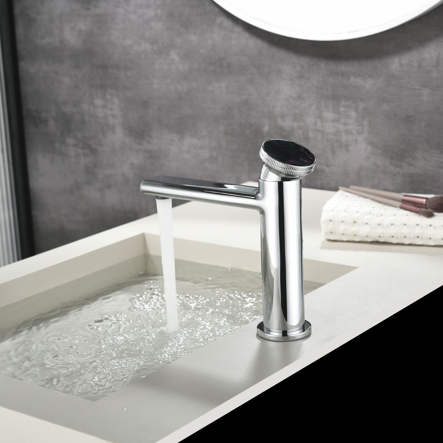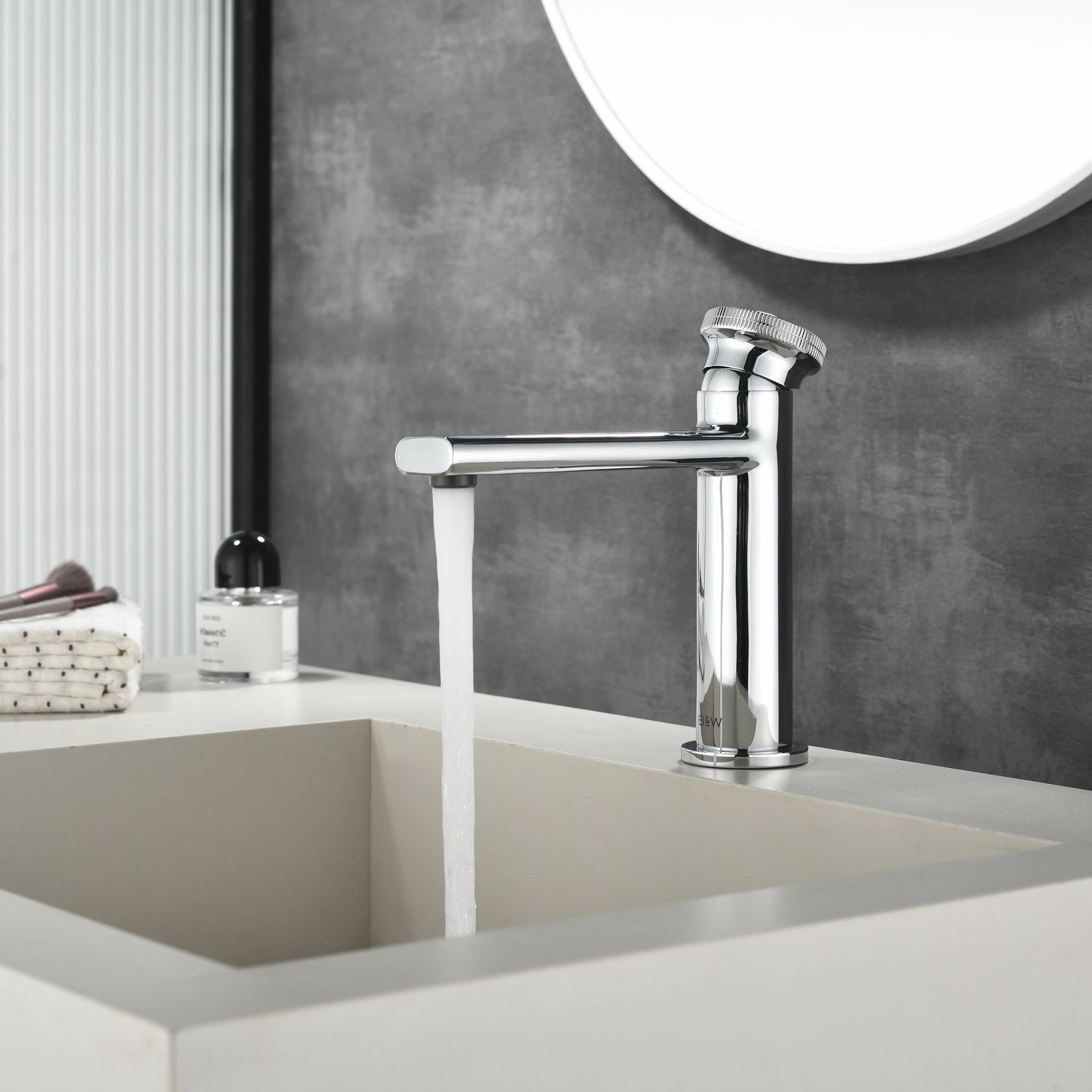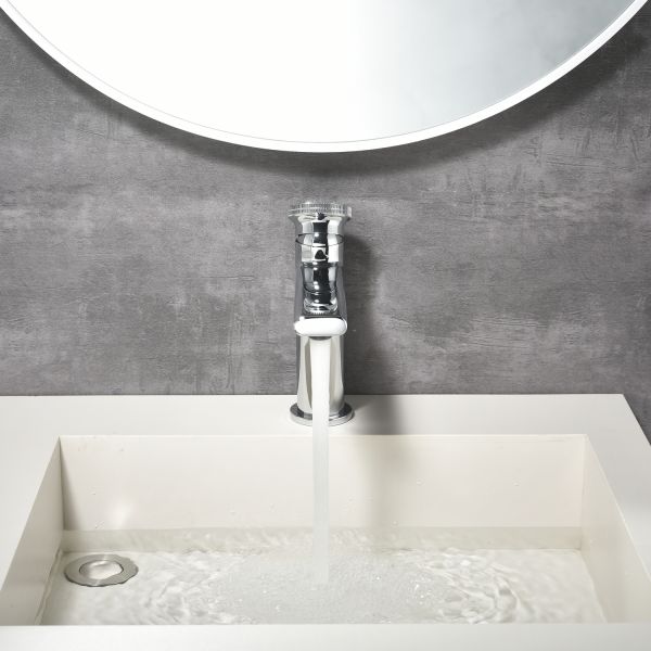 Смеситель для раковины датского производителя Black&White в цвете глянцевый хром. Материал корпуса – сантехническая латунь марки HPB 59,безопасный для здоровья и высокоресурсный сплав.Для  настройки температуры  установлен керамический картридж прогрессивного типа – давление выдается постоянным , а температура выставляется с помощью круглой ручки с насечками расположенной сверху корпуса. В изделии пересекаются цилиндрические и прямоугольные формы, которые гармонично вольются в современные интерьеры ванных комнат.