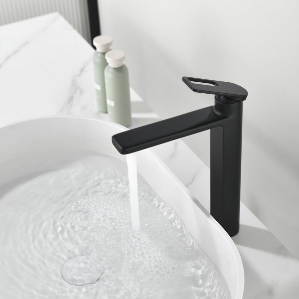 Смеситель для  накладных раковин датского производителя Black&White черного матового цвета. Корпус выполнен из сантехнической латуни, безопасен для здоровья и обладает высоким ресурсом. Управления потоками воды осуществляется с помощью керамического картриджа, повышенной пропускной способности. Длинна излива составляет 20 см., что позволяет устанавливать изделие на большинство раковин и комфортно использовать для мытья рук.