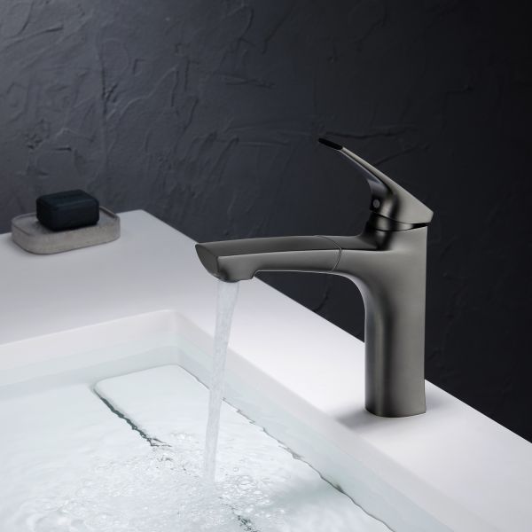 Смеситель для раковины Black&White Universe 7901MG с выдвижным изливом оружейная сталь