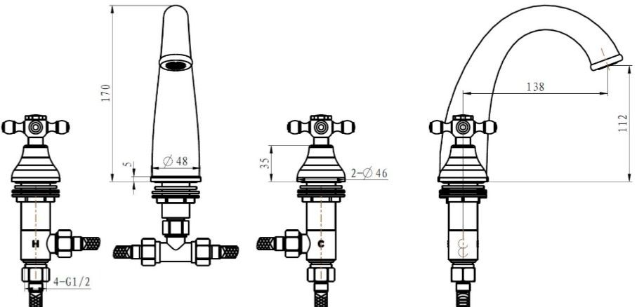 • Высота смесителя: