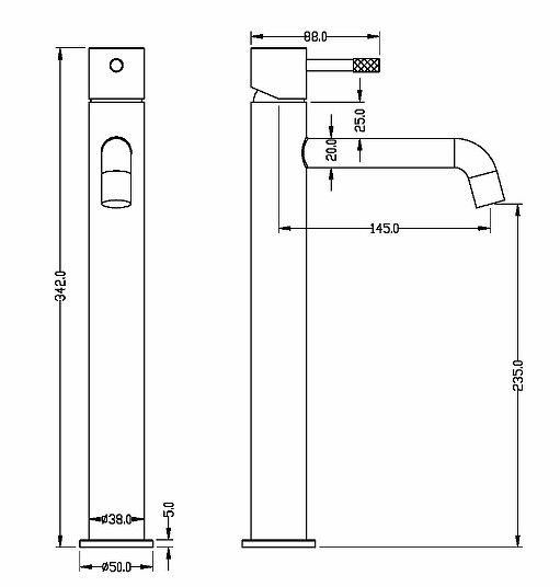 • Высота смесителя: