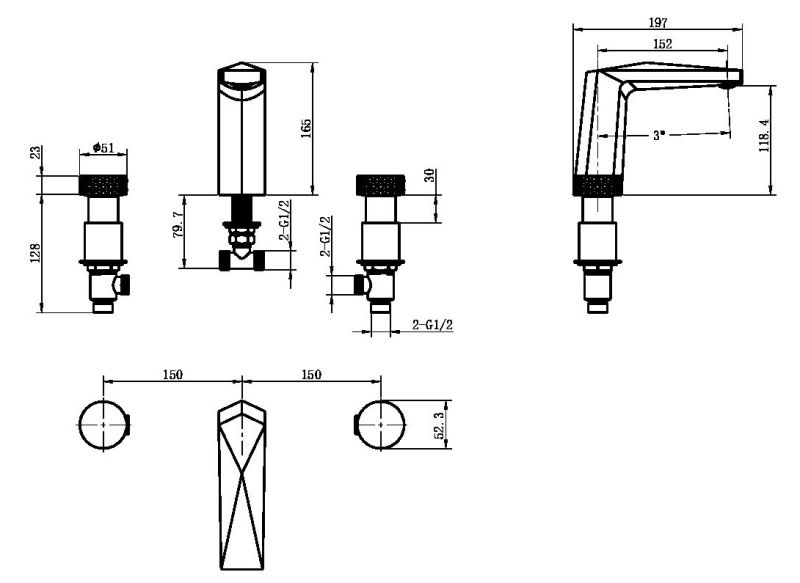 Смеситель для раковины Boheme Venturo 150-SGM-ICE антрацит глянец
