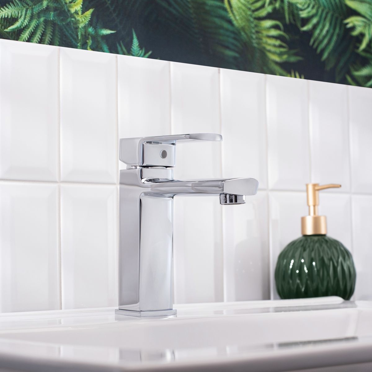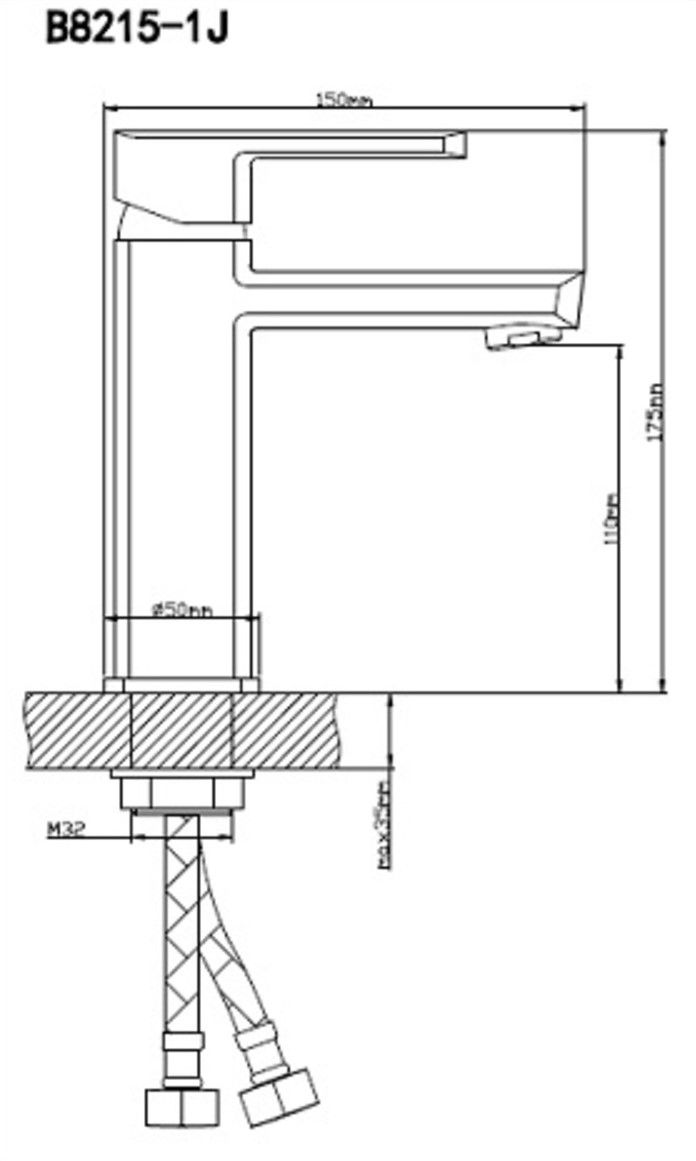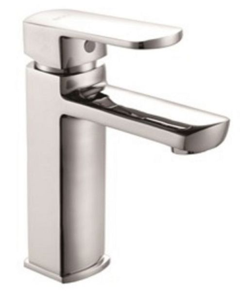 Однорычажный смеситель для раковины ТМ BOOU, стильная модель с прямоугольными гранями корпуса, отлично подойдет для выдержанной классической ванной комнаты.