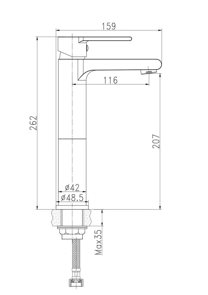 • Высота смесителя: