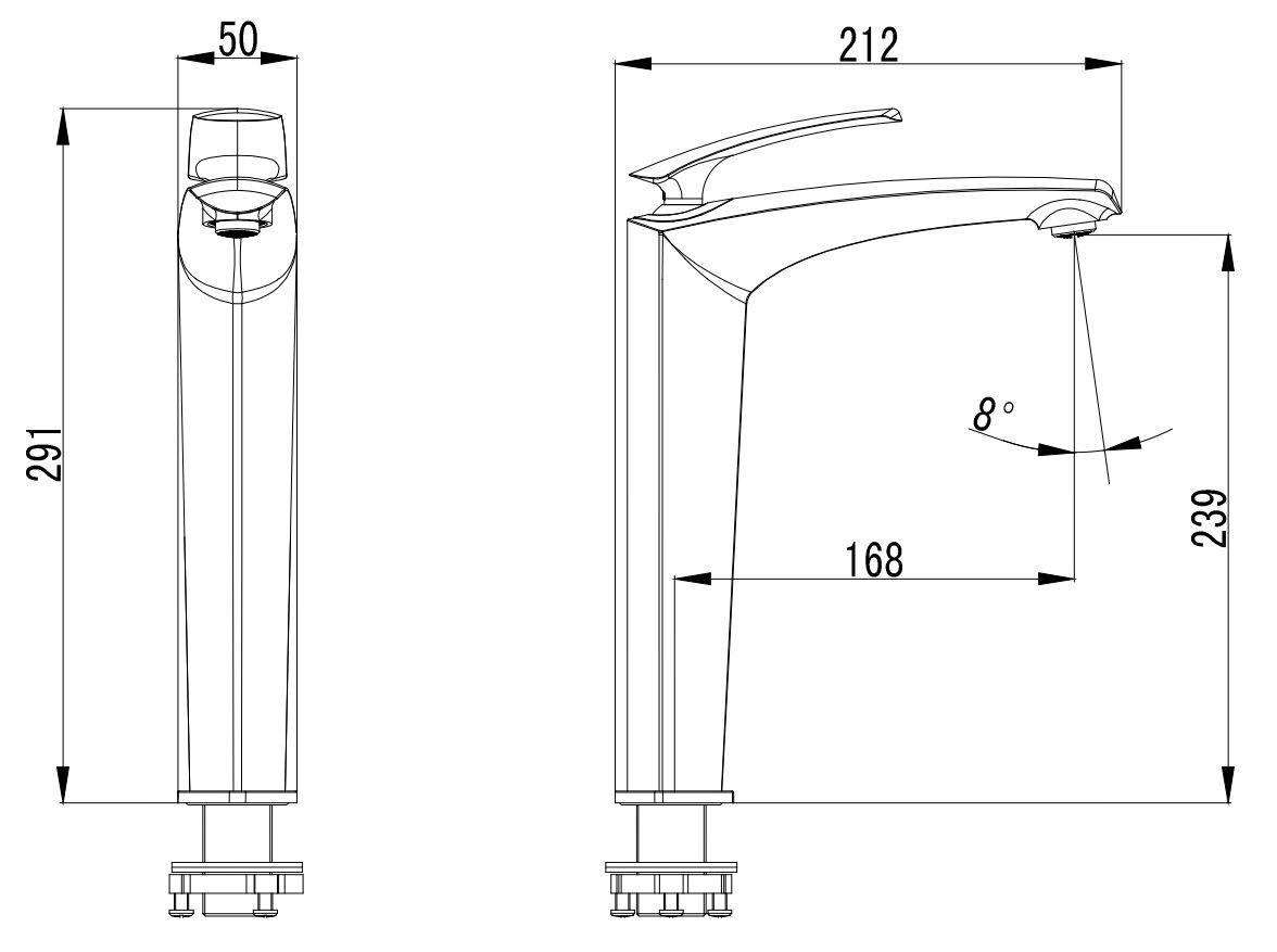 - Вращение излива фиксированный