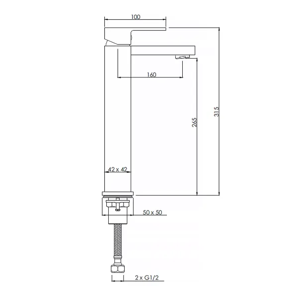 Гибкая подводка 600 ммСмеситель может устанавливаться на столешницу совместно с отдельностоящими раковинами чашами