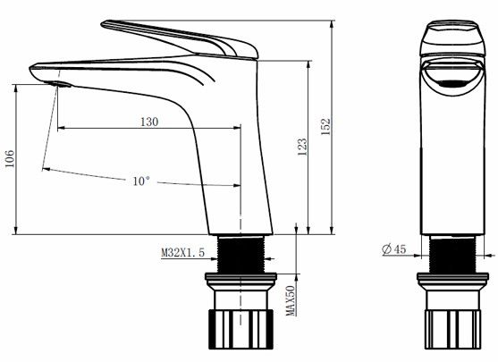• Высота смесителя: