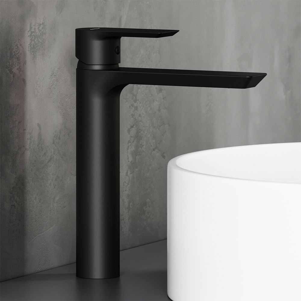 Смеситель для раковины Damixa Apollo 470250300 черныйКорпус смесителя 1 шт.; подводка для воды 2 шт.; комплект крепления 1 компл.; инструкция изделия. Черный, высокий смеситель для накладных раковин, одноручковый, латунь,керамический картридж, ручка и излив имеют плоскую форму