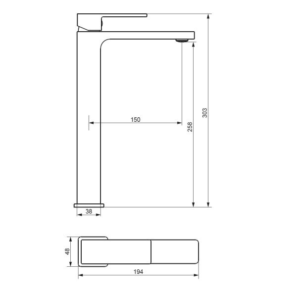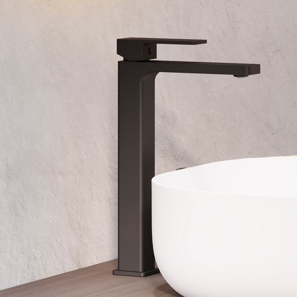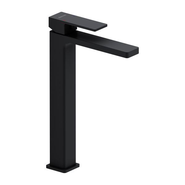 Смеситель для раковины Damixa Gala 530250300 черныйКорпус смесителя 1 шт.; подводка для воды 2 шт.; комплект крепления 1 компл.; инструкция изделия. Матовый черный, высокий умывальник для накладной раковины, строгие прямоугольные формы