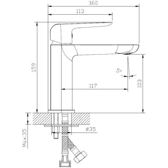 • Высота смесителя: