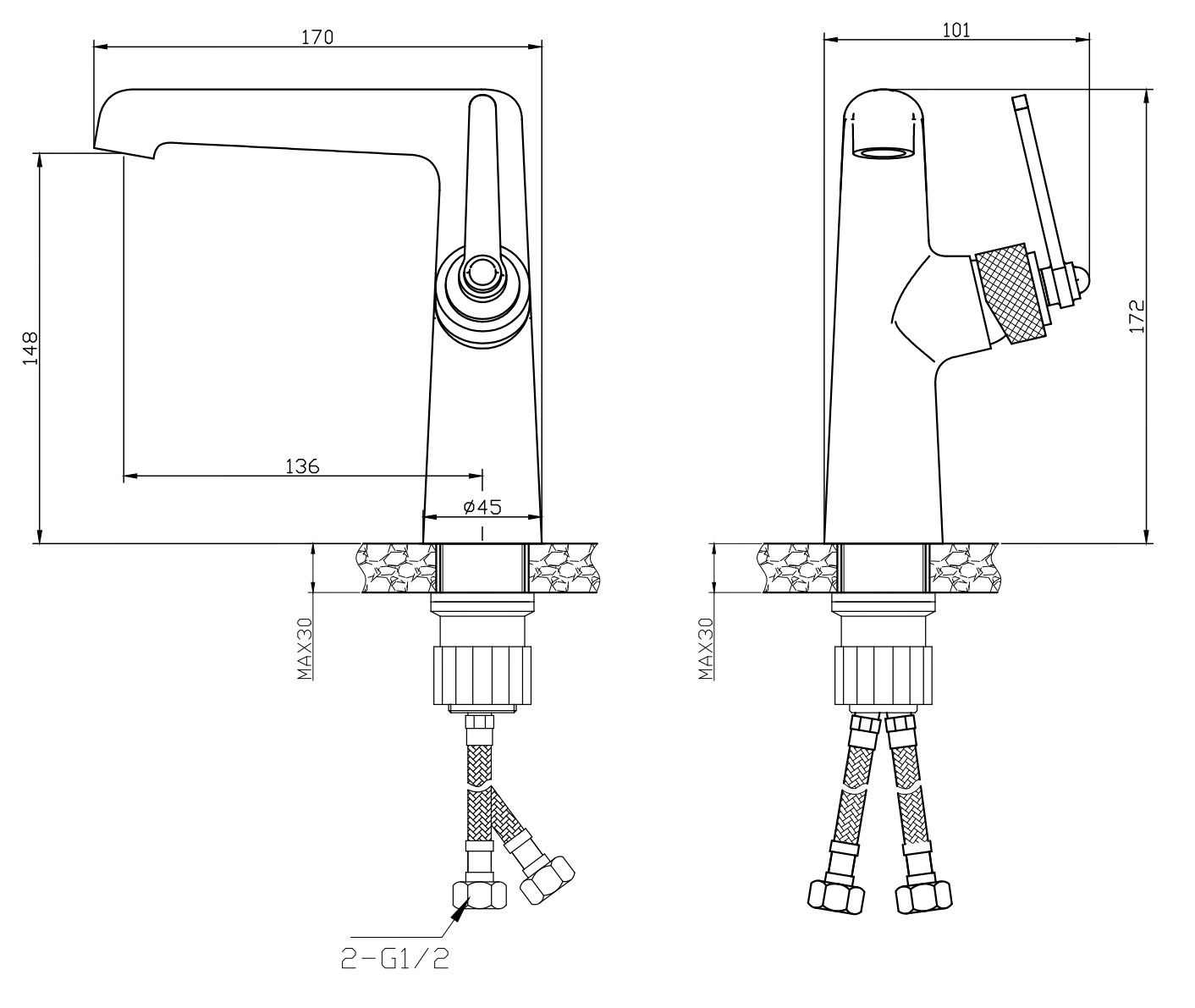 Комфорт: скрытый аэратор, стационарный излив.