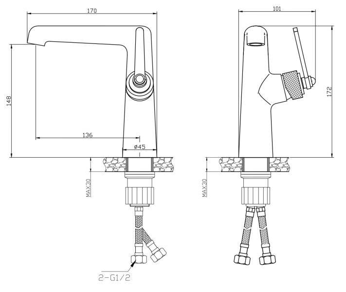 • Высота смесителя: