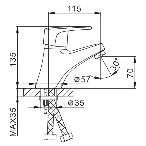 • Высота смесителя: