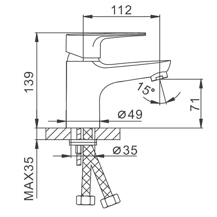 • Высота смесителя: