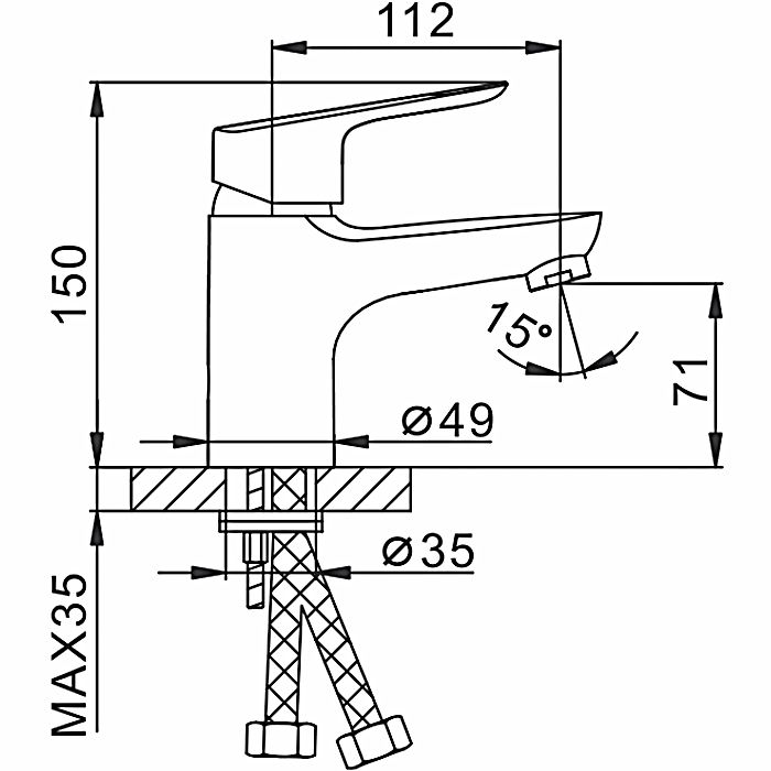 • Высота смесителя: