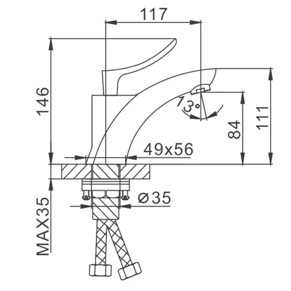 • Высота смесителя: