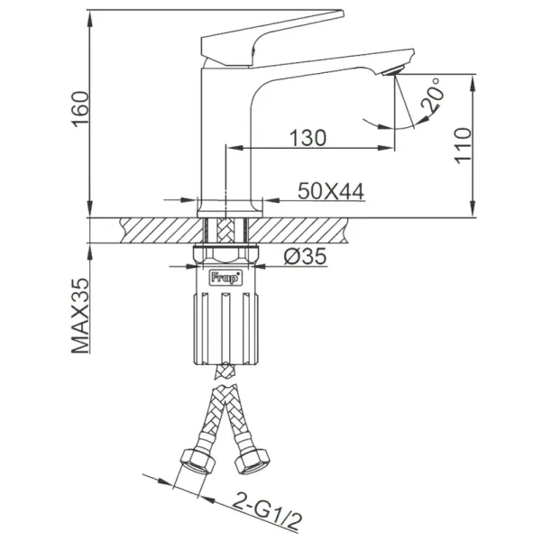 • Высота смесителя: