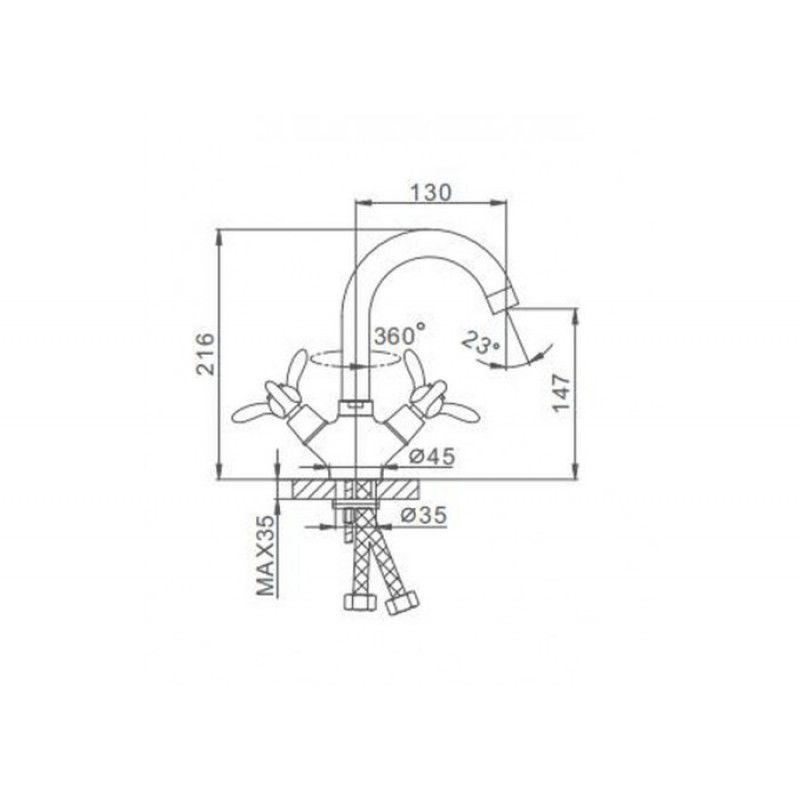 • Высота смесителя: