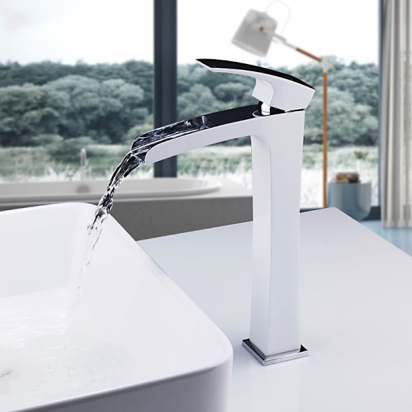 Смеситель для умывальника Gappo G1007-31 - надежная высокая однорычажная модель c каскадным носом-изливом, с открытым желобом. Изготовлен из латуни в корпусе которого находится картридж 25 мм. Благодаря своей форме и современному дизайну идеально подойдет к любому интерьеру. Цвет - хром / белый.