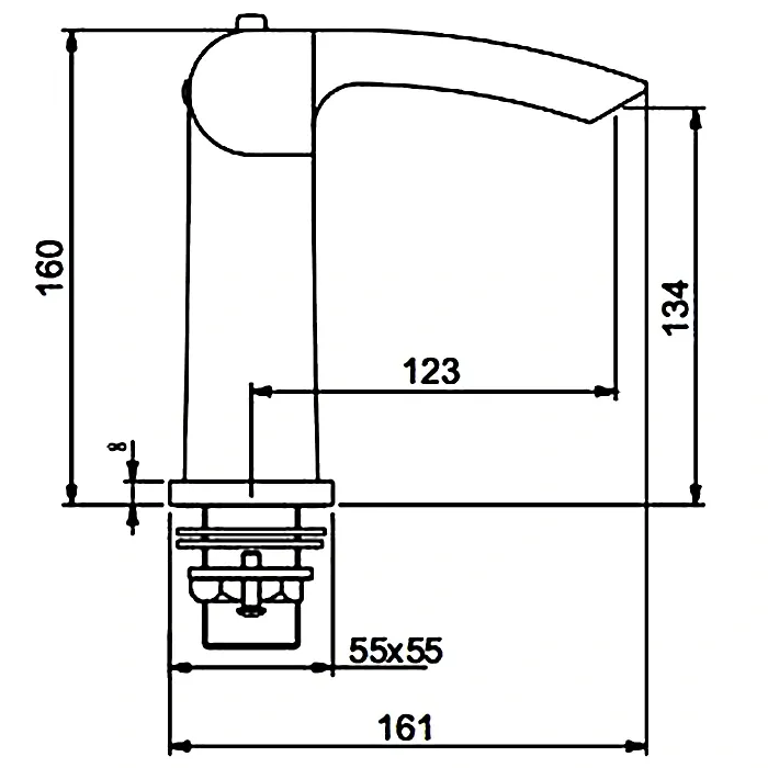 • Высота смесителя: