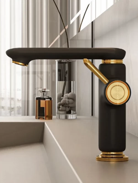 Смеситель для раковины Gappo G1009-63 чёрный/золото