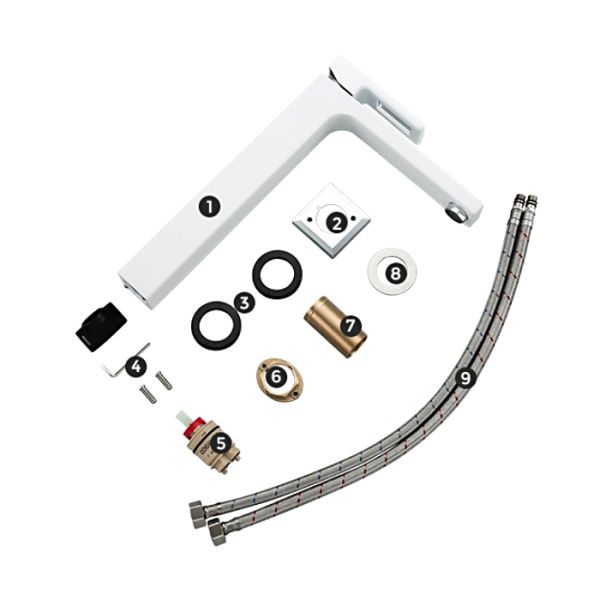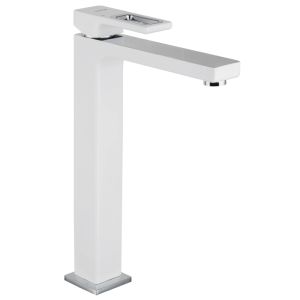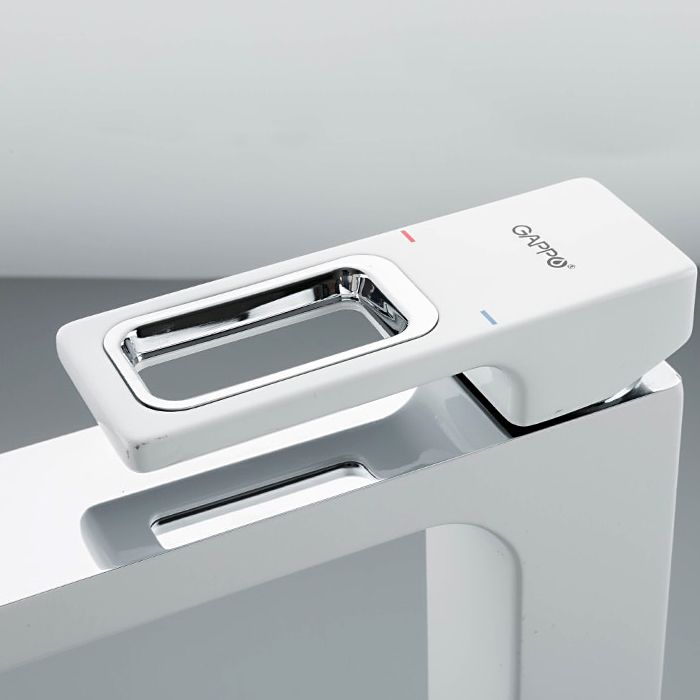 Смеситель для умывальника Gappo G1017-2 - надежная однорычажная латунная модель с высоким изливом. Подходит для умывальников, монтируемых на столешницу. Цвет - белый.