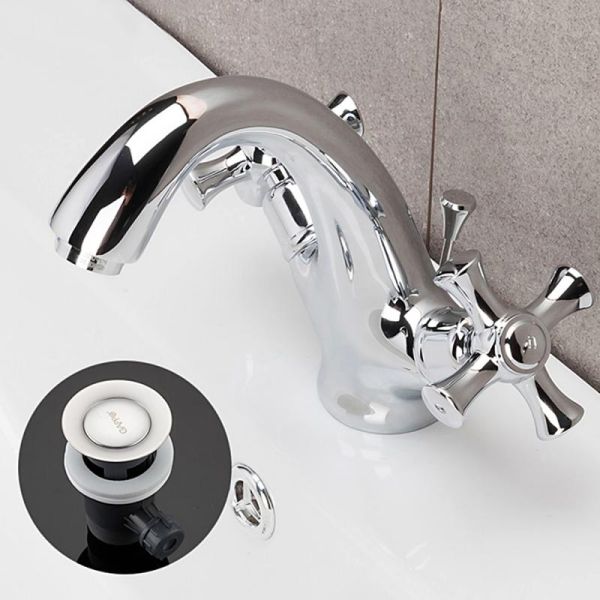 Смеситель для умывальника Gappo Pollmn G1042 - двухвентильный, с литым изливом. Излив оснащен аэратором для смягчения потока и экономичного расходования воды. Кран-буксы с углом поворота 180°. Корпус изготовлен из латуни с хромированным покрытием. В комплекте донный клапан "клик-клак".