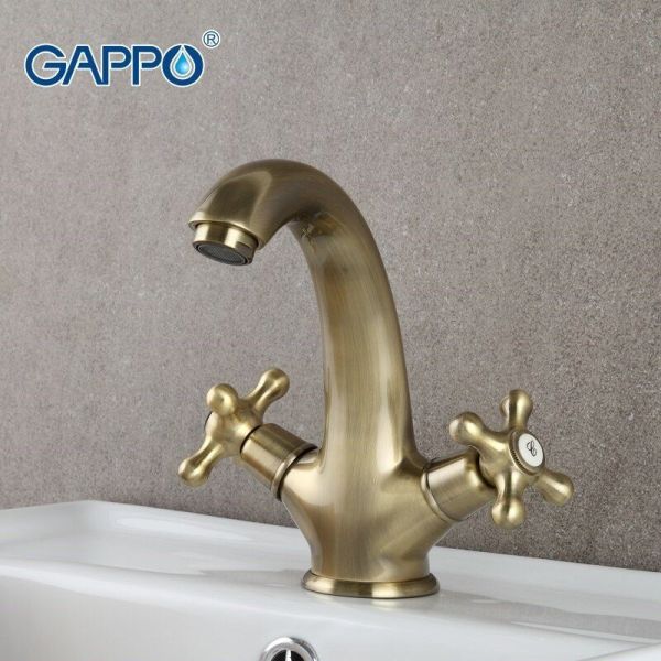 Смеситель для умывальника Gappo Sofia G1063-4 - двухвентильный, излив оснащен аэратором для смягчения потока и экономичного расходования воды. Корпус изготовлен из латуни с бронзовым покрытием.