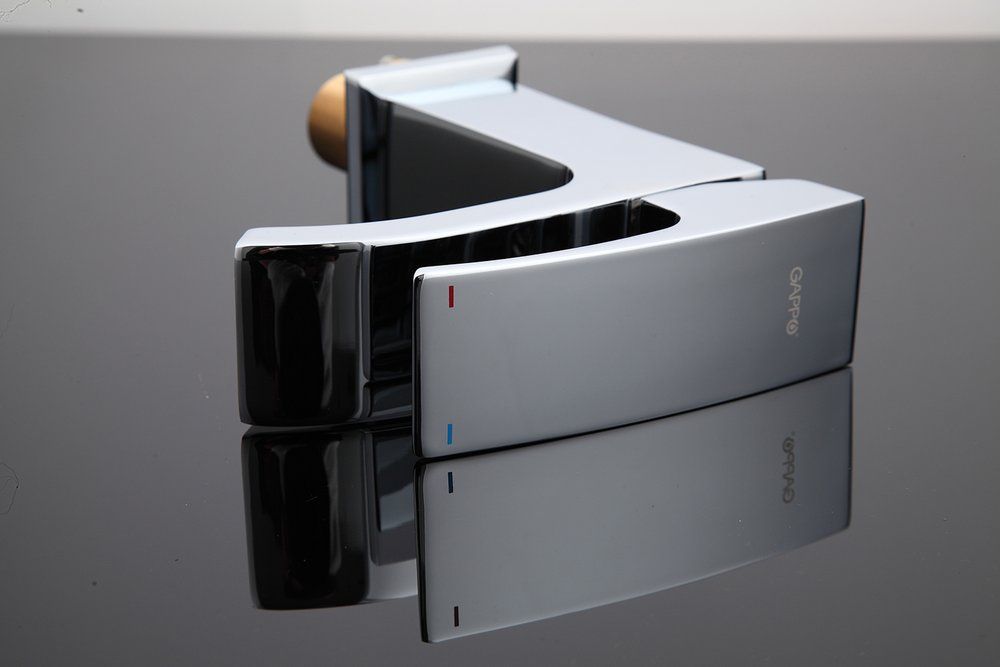 Смеситель для умывальника Gappo Jacob G1007-1 - однорычажная латунная модель с оригинальным плоским. Цвет - хром.
