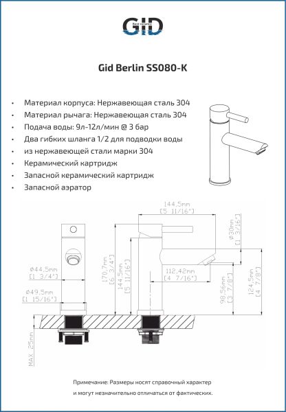 Смеситель для раковины Gid Berlin SS080-BM-K SS080BMK черный матовый