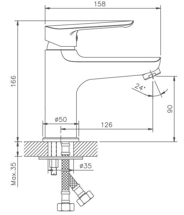 Смеситель для раковины Haiba.Керамический картридж 35 мм.Изготовлен из металического сплава стали.Максимальная глубина монтажа 35 мм.Диаметр монтажного отверстия 35 мм.