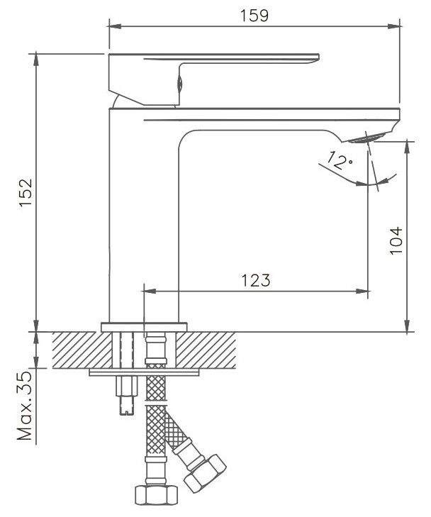 Смеситель для раковины Haiba.Керамический картридж 30 мм.Изготовлен из латуни.Максимальная глубина монтажа 35 мм.Диаметр монтажного отверстия 35 мм.