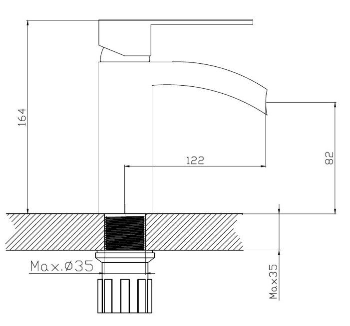 Смеситель для раковины с каскадным изливом Haiba.Изготовлен из латуни.Максимальная глубина монтажа 35 мм.Диаметр монтажного отверстия 35 мм.