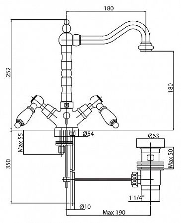 Оснащение: донный клапан, аэратор