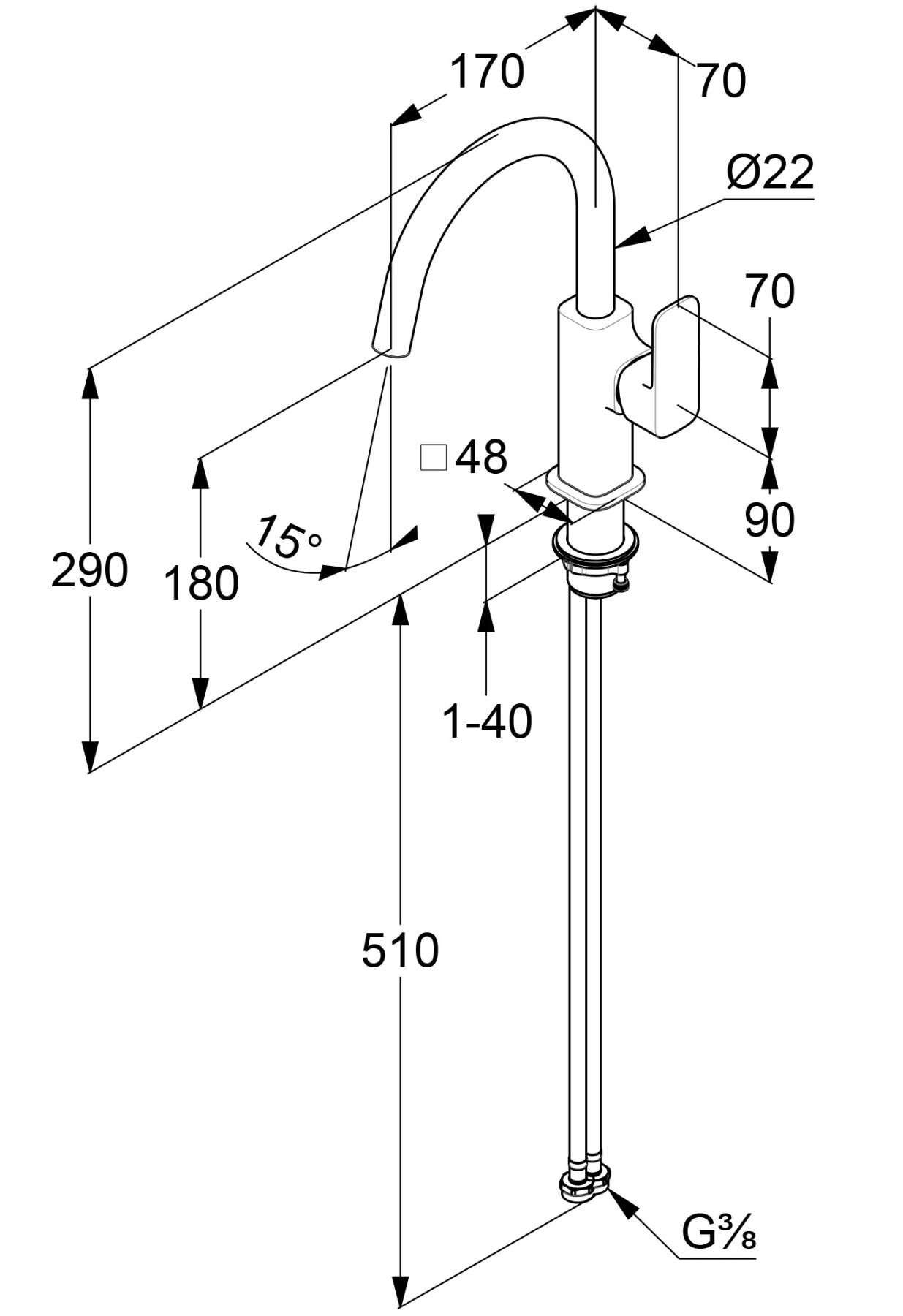 - Высота смесителя:29