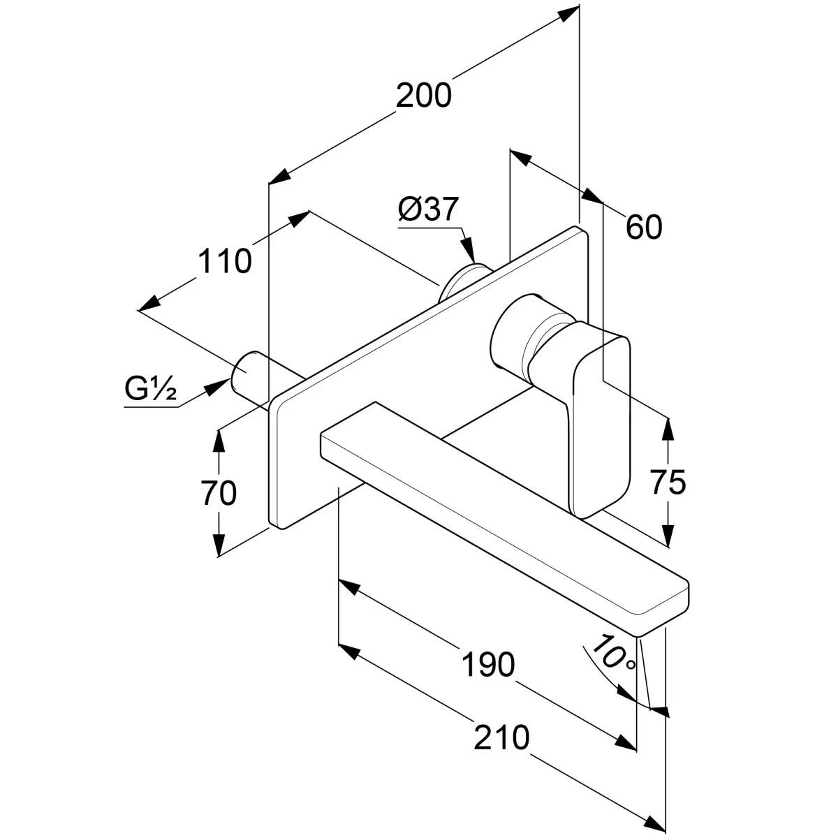 длина излива 210 мм