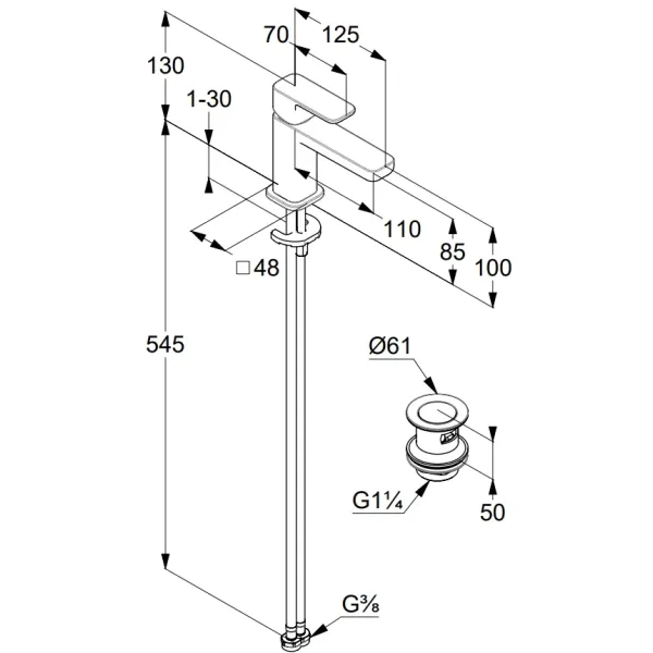 • Высота смесителя: