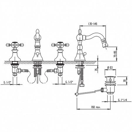 Смеситель для раковины на три отверстия, хром Cezares ATLANTIS-NOSTALGIA-BLS2-01