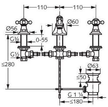 Смеситель для раковины на три отверстия Kludi 1926 хром 510460520