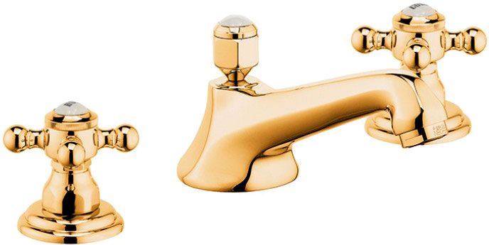 Смеситель для раковины на три отверстия Kludi 1926 позолоченный 510464520