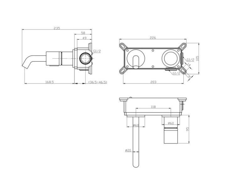 Смеситель для раковины настенный Bronze de Luxe FOCUS 24686CM, хром