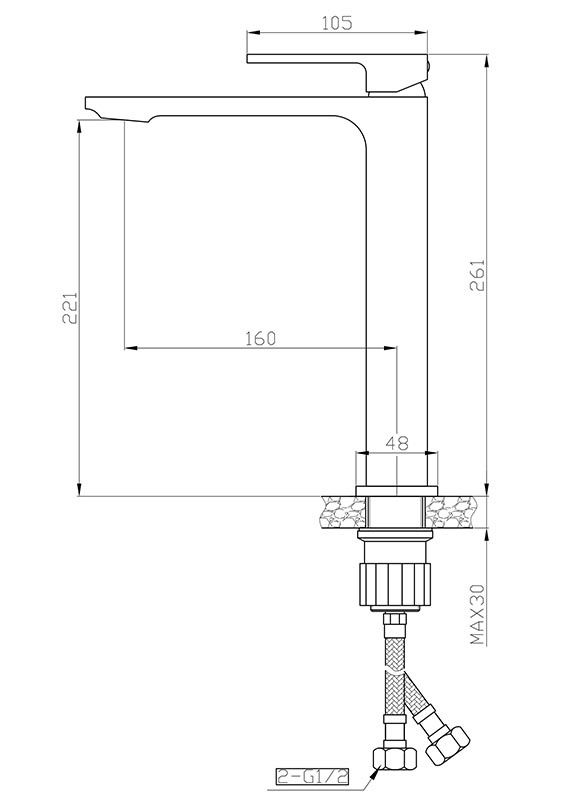 • Высота смесителя: