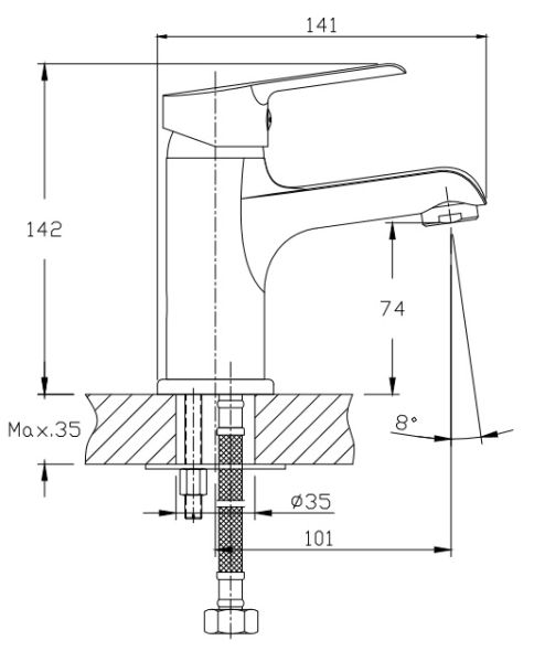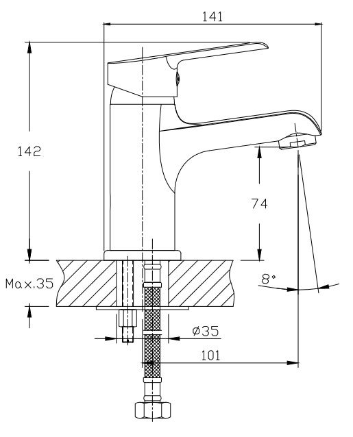 • Высота смесителя: