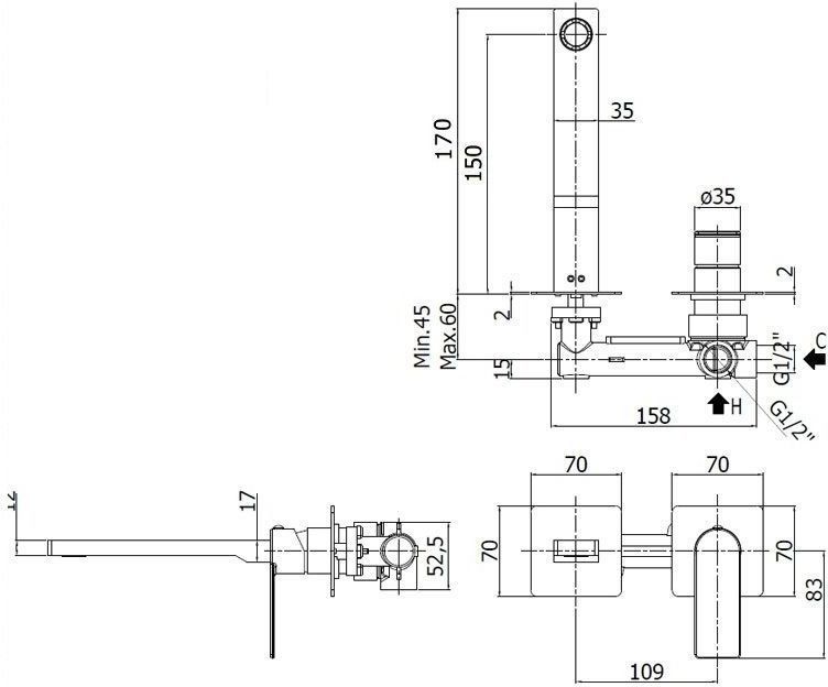 Смеситель для раковины встраиваемый с изливом 150мм с накладками из нерж. Стали 2 шт. 70х70мм, ХромСмеситель для раковины Paffoni Tango TA104CR70 (с внутренней частью) предназначен для раковины. Своим классическим дизайном и колористикой он внесет в интерьер помещения особое настроение, подчеркнув его своеобразие. Он выполнен из надежного материала латунь/Нержавеющая сталь, который не ржавеет, а потому прослужит без ремонтов. Изделие является удачным примером соотношения цена/качество. Управление в смесителе предусмотрено однорычажное, что отвечает пожеланиям любителей такого типа смесителей. Высокую жизнеспособность и долговечность смесителю гарантирует керамический картридж, отличительной чертой которого является проработанная конструкция - залог бесперебойной работы в течение продолжительного времени. Не зря гарантия на смеситель – 5 лет, в течение которого производитель Paffoni заверяет в его бесперебойной работе. Форма излива в смесителе - традиционная, а тип - фиксированный. При покупке учтите, что подводка у смесителя жесткая, что требуется знать для его установки.