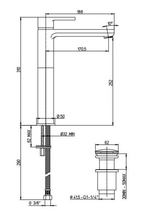 • Высота смесителя: